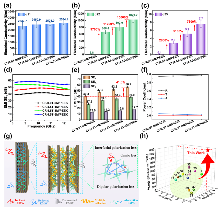 碳纤维增强热塑性聚醚醚酮(CF/PEEK)层合板因其优异的轻质高强、耐腐蚀性、耐高温及可回收性,在航空航天、国防军工、高端装备、人形机器人等战略前沿领域具有广泛的应用前景。然而,CF/PEEK层合板在服役过程中会受到各类冲击载荷作用进而导致层间开裂等损伤,以及新一代装备对高功率电子设备抗电磁干扰(EMI)、导电导热等新的需求,现有碳纤维复合材料的单一性能难以满足极端环境、工况下的综合性能需求。因此,亟需开发兼具结构性与功能特性的CF/PEEK复合材料。好色视频